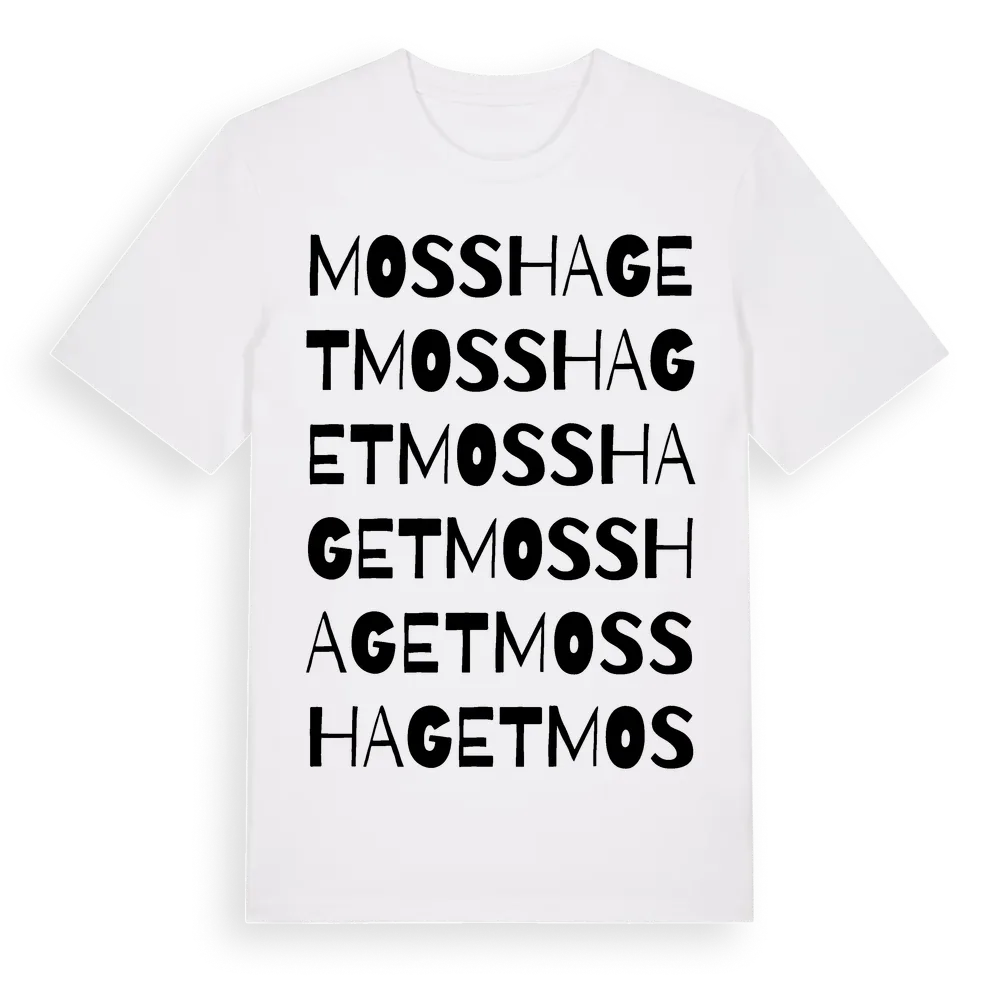Mosshaget ordlek t-shirt är inspirerad av Mosshaget i Kalmar län, Sverige. Tröjan är designad för dig som har en speciell koppling till platsen – oavsett om du bor här, har rötterna här eller bara älskar Mosshaget.