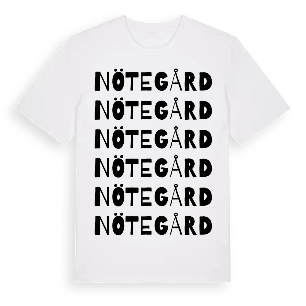 Nötegård ordlek t-shirt är inspirerad av Nötegård i Kalmar län, Sverige. Tröjan är designad för dig som har en speciell koppling till platsen – oavsett om du bor här, har rötterna här eller bara älskar Nötegård.
