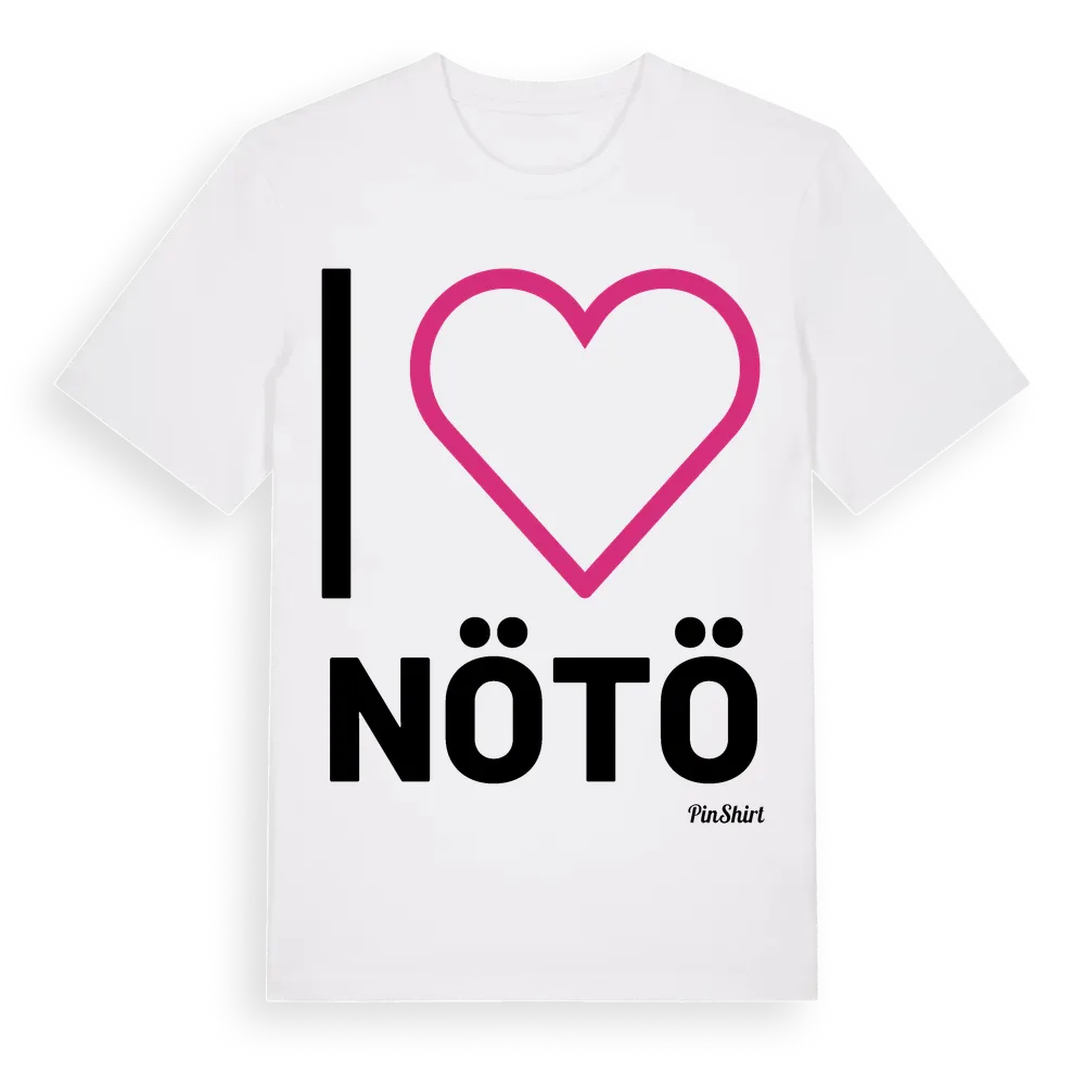 Det klassiska "I ❤ Nötö"-motivet i stort format som täcker hela bröstet. För dig som vill visa kärleken till Nötö på riktigt. Premium bomull, unisex – från Nötö i Kalmar län.