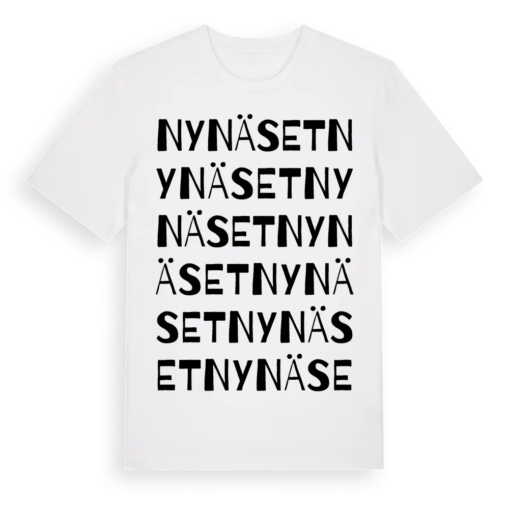 Nynäset ordlek t-shirt är inspirerad av Nynäset i Kalmar län, Sverige. Tröjan är designad för dig som har en speciell koppling till platsen – oavsett om du bor här, har rötterna här eller bara älskar Nynäset.
