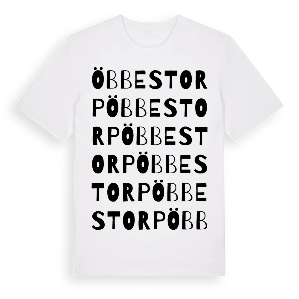 Öbbestorp ordlek t-shirt är inspirerad av Öbbestorp i Kalmar län, Sverige. Tröjan är designad för dig som har en speciell koppling till platsen – oavsett om du bor här, har rötterna här eller bara älskar Öbbestorp.