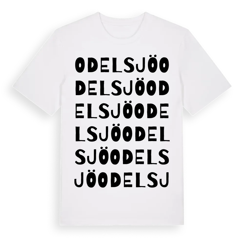 Odelsjö ordlek t-shirt är inspirerad av byn Odelsjö i Kalmar län, Sverige. Tröjan är designad för dig som har en speciell koppling till platsen – oavsett om du bor här, har rötterna här eller bara älskar Odelsjö.