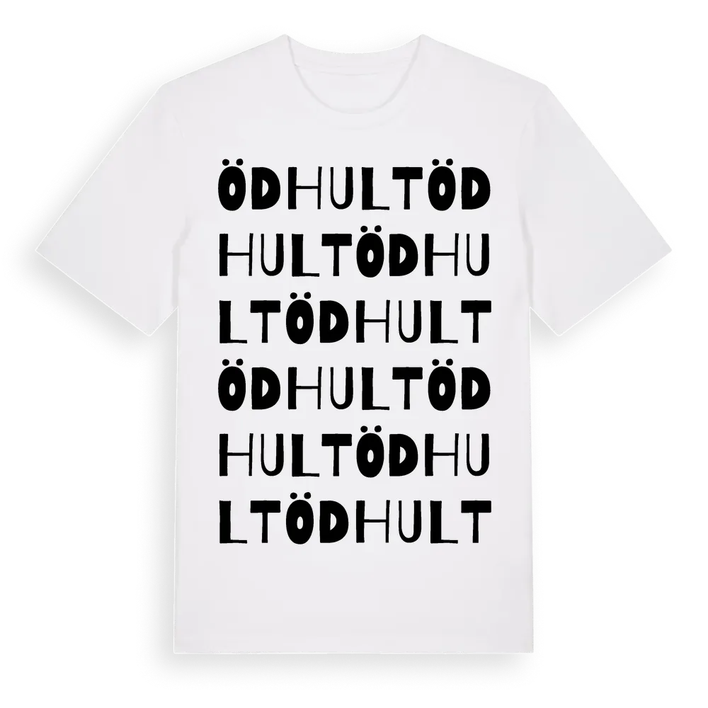 Ödhult ordlek t-shirt är inspirerad av byn Ödhult i Kalmar län, Sverige. Tröjan är designad för dig som har en speciell koppling till platsen – oavsett om du bor här, har rötterna här eller bara älskar Ödhult.