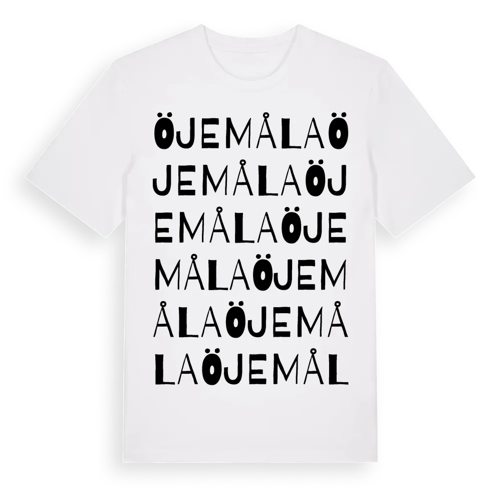 Öjemåla ordlek t-shirt är inspirerad av Öjemåla i Kalmar län, Sverige. Tröjan är designad för dig som har en speciell koppling till platsen – oavsett om du bor här, har rötterna här eller bara älskar Öjemåla.