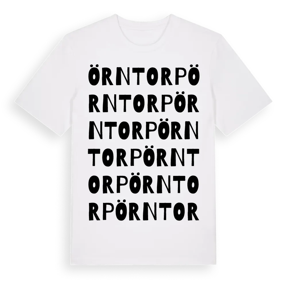 Örntorp ordlek t-shirt är inspirerad av byn Örntorp i Kalmar län, Sverige. Tröjan är designad för dig som har en speciell koppling till platsen – oavsett om du bor här, har rötterna här eller bara älskar Örntorp.