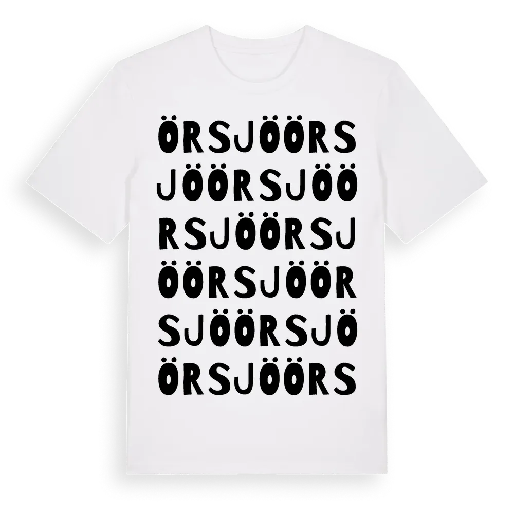 Örsjö ordlek t-shirt är inspirerad av byn Örsjö i Kalmar län, Sverige. Tröjan är designad för dig som har en speciell koppling till platsen – oavsett om du bor här, har rötterna här eller bara älskar Örsjö.