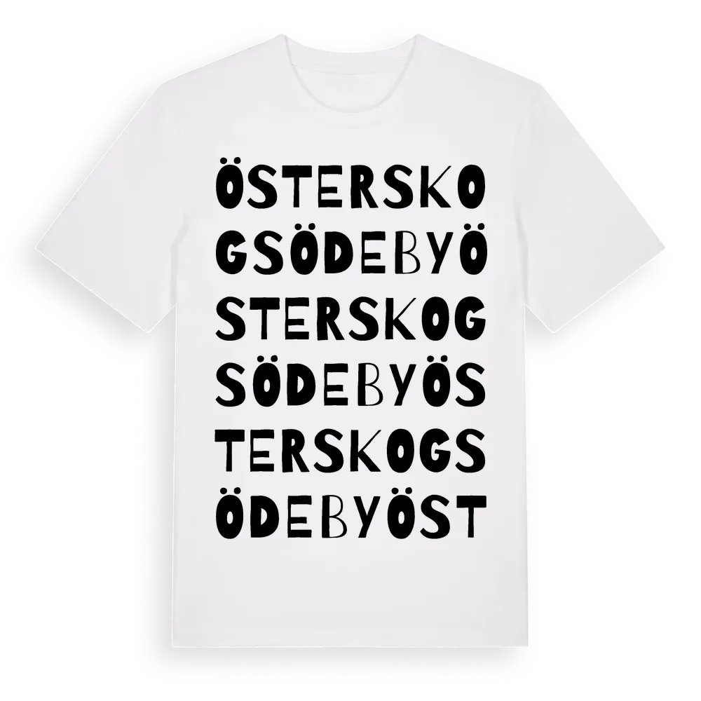 Österskogs Ödeby ordlek t-shirt är inspirerad av Österskogs Ödeby i Kalmar län, Sverige. Tröjan är designad för dig som har en speciell koppling till platsen – oavsett om du bor här, har rötterna här eller bara älskar Österskogs Ödeby.