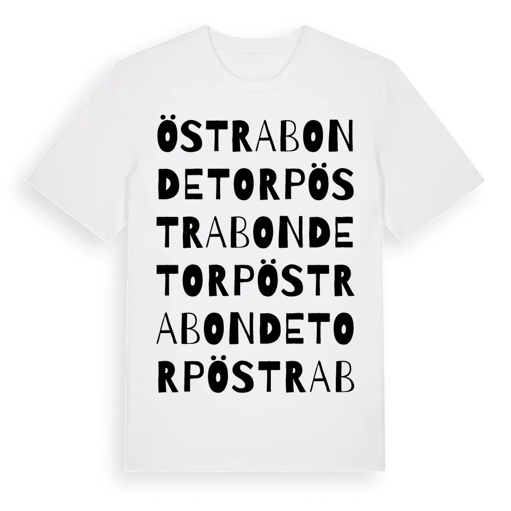 Östra Bondetorp ordlek t-shirt är inspirerad av byn Östra Bondetorp i Kalmar län, Sverige. Tröjan är designad för dig som har en speciell koppling till platsen – oavsett om du bor här, har rötterna här eller bara älskar Östra Bondetorp.