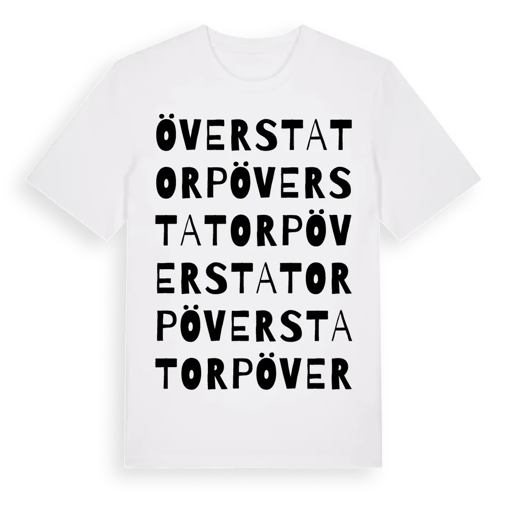 En ordlek byggd på Överstatorps namn. Subtilt och klurig – ett motiv som bara de som verkligen känner platsen fullt ut förstår. Premium bomull, unisex – från byn Överstatorp i Kalmar län.