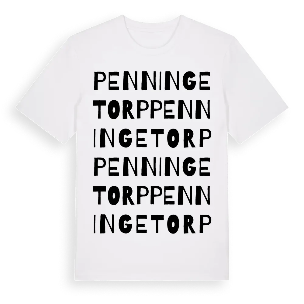 Penningetorp ordlek t-shirt är inspirerad av Penningetorp i Kalmar län, Sverige. Tröjan är designad för dig som har en speciell koppling till platsen – oavsett om du bor här, har rötterna här eller bara älskar Penningetorp.