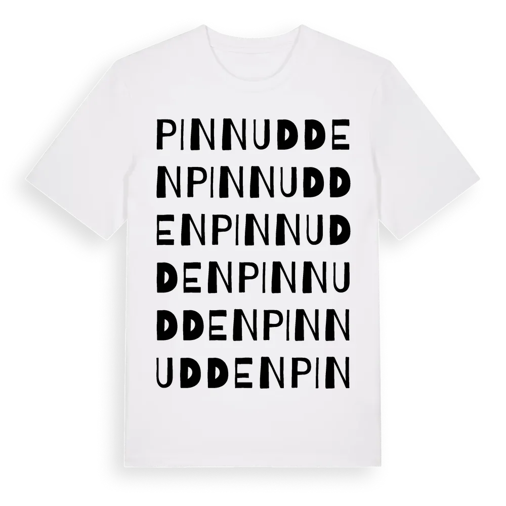 Pinnudden ordlek t-shirt är inspirerad av Pinnudden i Kalmar län, Sverige. Tröjan är designad för dig som har en speciell koppling till platsen – oavsett om du bor här, har rötterna här eller bara älskar Pinnudden.