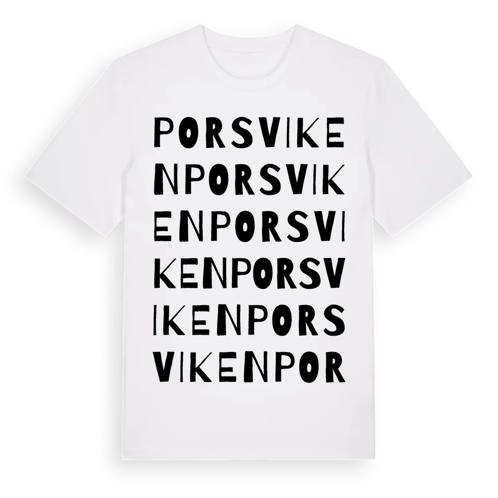 Porsviken ordlek t-shirt är inspirerad av Porsviken i Kalmar län, Sverige. Tröjan är designad för dig som har en speciell koppling till platsen – oavsett om du bor här, har rötterna här eller bara älskar Porsviken.