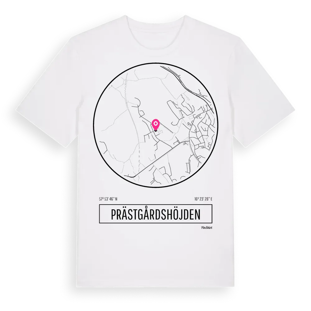 Prästgårdshöjden t-shirt är inspirerad av stadsdelen Prästgårdshöjden i Kalmar län, Sverige. Tröjan är designad för dig som har en speciell koppling till platsen – oavsett om du bor här, har rötterna här eller bara älskar Prästgårdshöjden.