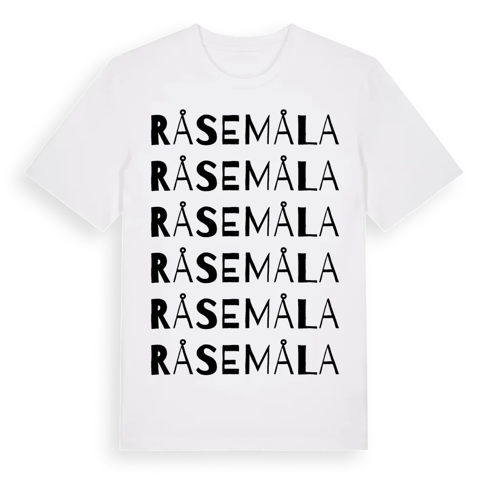 Råsemåla ordlek t-shirt är inspirerad av Råsemåla i Kalmar län, Sverige. Tröjan är designad för dig som har en speciell koppling till platsen – oavsett om du bor här, har rötterna här eller bara älskar Råsemåla.