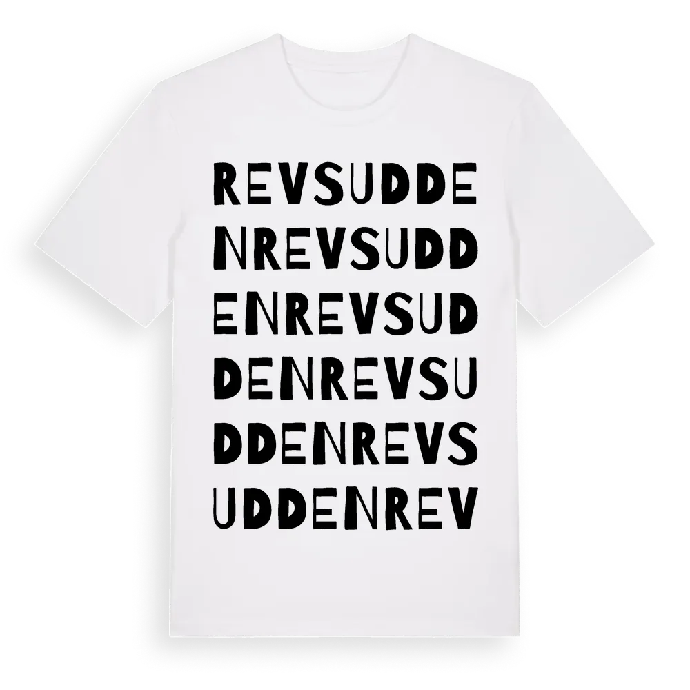 Revsudden ordlek t-shirt är inspirerad av byn Revsudden i Kalmar län, Sverige. Tröjan är designad för dig som har en speciell koppling till platsen – oavsett om du bor här, har rötterna här eller bara älskar Revsudden.