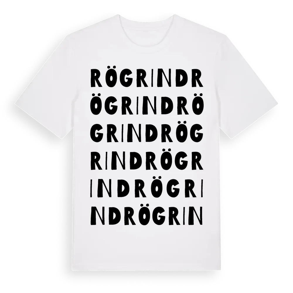 En ordlek byggd på Rögrinds namn. Subtilt och klurig – ett motiv som bara de som verkligen känner platsen fullt ut förstår. Premium bomull, unisex – från Rögrind i Kalmar län.