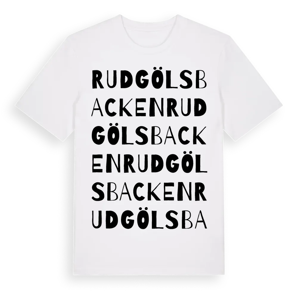 Rudgölsbacken ordlek t-shirt är inspirerad av Rudgölsbacken i Kalmar län, Sverige. Tröjan är designad för dig som har en speciell koppling till platsen – oavsett om du bor här, har rötterna här eller bara älskar Rudgölsbacken.