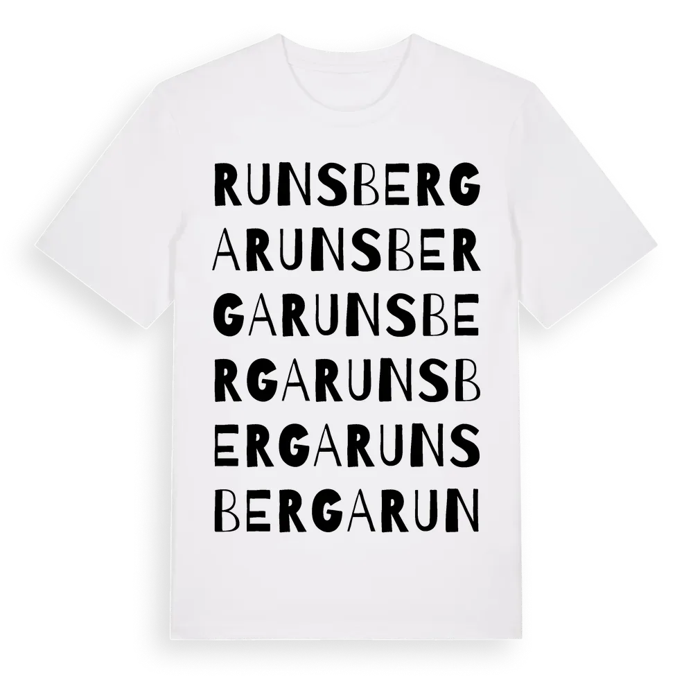 Runsberga ordlek t-shirt är inspirerad av byn Runsberga i Kalmar län, Sverige. Tröjan är designad för dig som har en speciell koppling till platsen – oavsett om du bor här, har rötterna här eller bara älskar Runsberga.