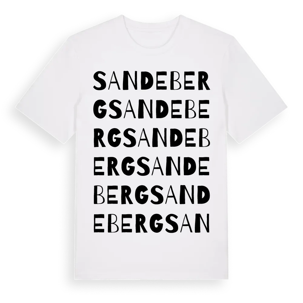 Sandeberg ordlek t-shirt är inspirerad av Sandeberg i Kalmar län, Sverige. Tröjan är designad för dig som har en speciell koppling till platsen – oavsett om du bor här, har rötterna här eller bara älskar Sandeberg.