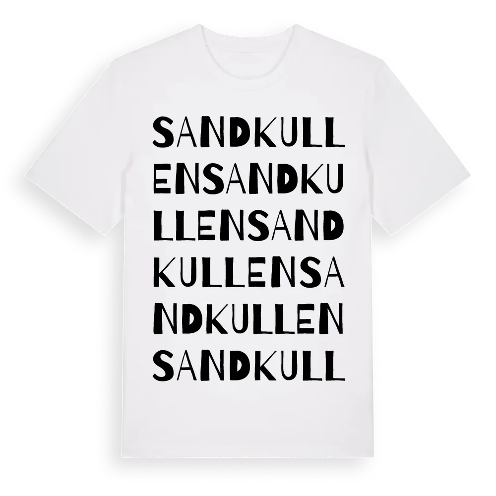 Sandkullen ordlek t-shirt är inspirerad av Sandkullen i Kalmar län, Sverige. Tröjan är designad för dig som har en speciell koppling till platsen – oavsett om du bor här, har rötterna här eller bara älskar Sandkullen.