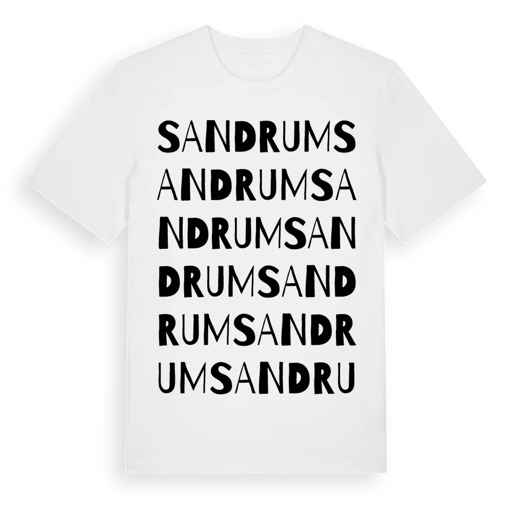 Sandrum ordlek t-shirt är inspirerad av Sandrum i Kalmar län, Sverige. Tröjan är designad för dig som har en speciell koppling till platsen – oavsett om du bor här, har rötterna här eller bara älskar Sandrum.