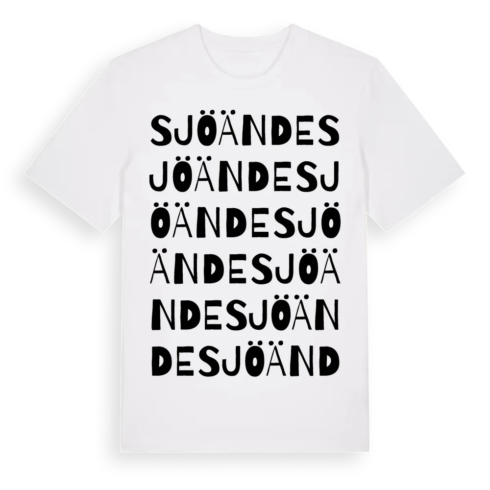 Sjöände ordlek t-shirt är inspirerad av byn Sjöände i Kalmar län, Sverige. Tröjan är designad för dig som har en speciell koppling till platsen – oavsett om du bor här, har rötterna här eller bara älskar Sjöände.