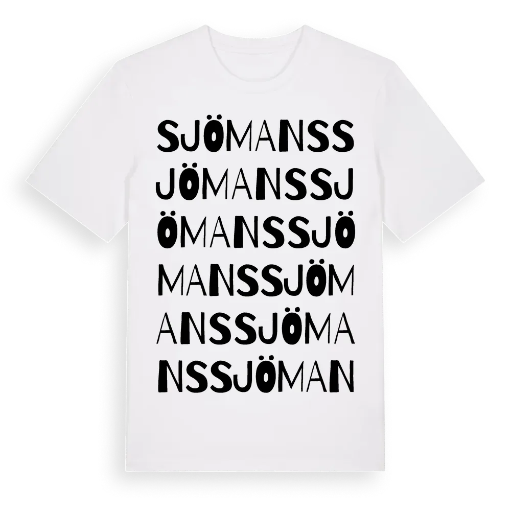 Sjömans ordlek t-shirt är inspirerad av Sjömans i Kalmar län, Sverige. Tröjan är designad för dig som har en speciell koppling till platsen – oavsett om du bor här, har rötterna här eller bara älskar Sjömans.