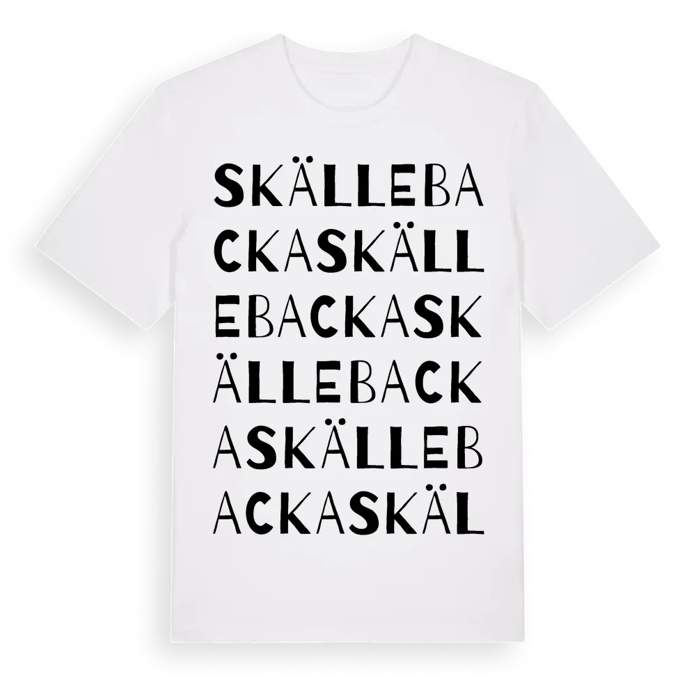 Skällebacka ordlek t-shirt är inspirerad av Skällebacka i Kalmar län, Sverige. Tröjan är designad för dig som har en speciell koppling till platsen – oavsett om du bor här, har rötterna här eller bara älskar Skällebacka.