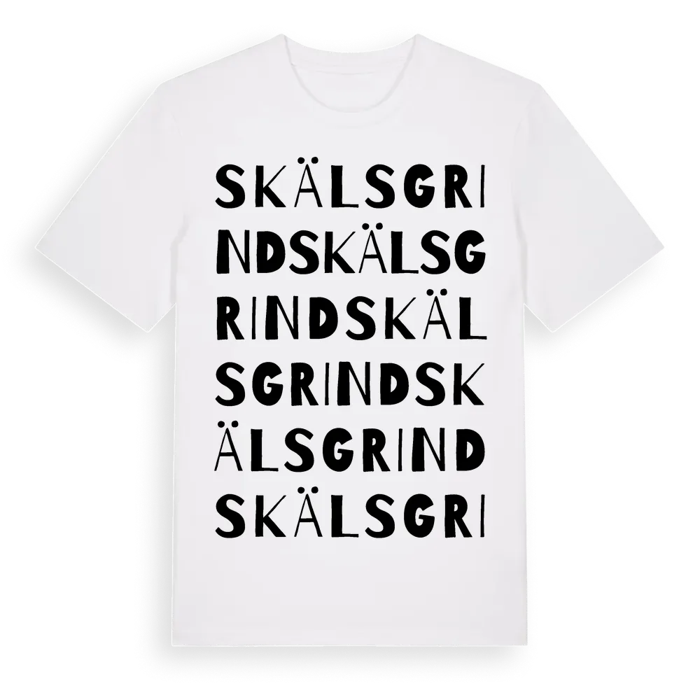 Skälsgrind ordlek t-shirt är inspirerad av Skälsgrind i Kalmar län, Sverige. Tröjan är designad för dig som har en speciell koppling till platsen – oavsett om du bor här, har rötterna här eller bara älskar Skälsgrind.