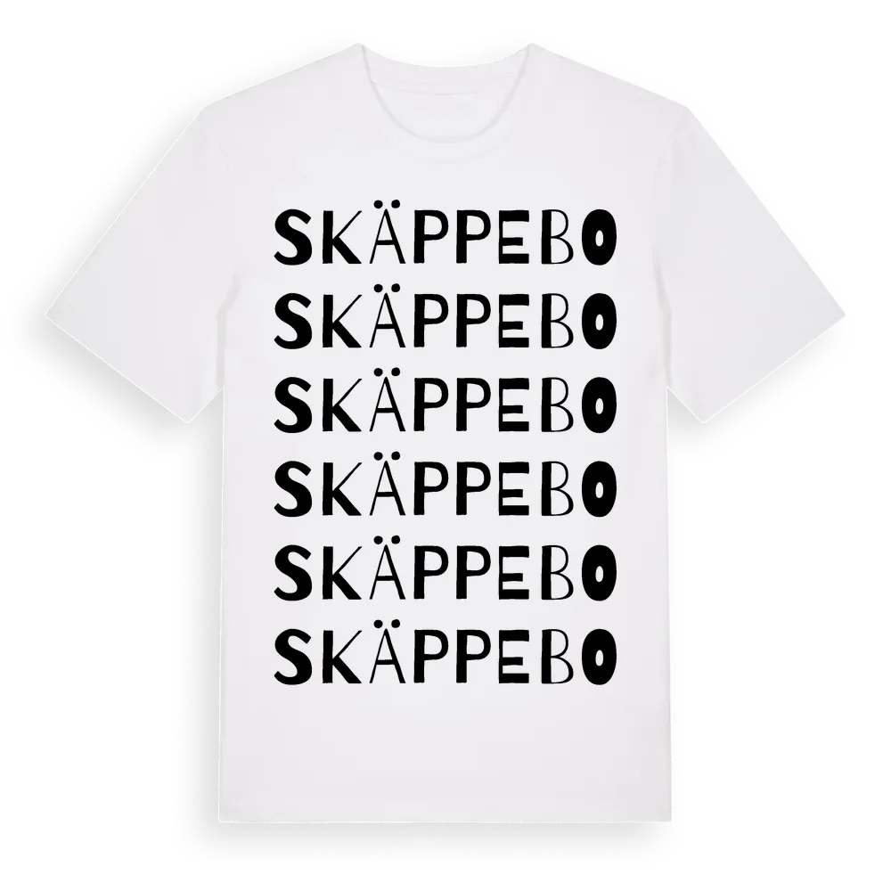 Skäppebo ordlek t-shirt är inspirerad av Skäppebo i Kalmar län, Sverige. Tröjan är designad för dig som har en speciell koppling till platsen – oavsett om du bor här, har rötterna här eller bara älskar Skäppebo.