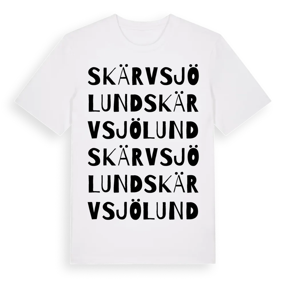 Skärvsjölund ordlek t-shirt är inspirerad av Skärvsjölund i Kalmar län, Sverige. Tröjan är designad för dig som har en speciell koppling till platsen – oavsett om du bor här, har rötterna här eller bara älskar Skärvsjölund.