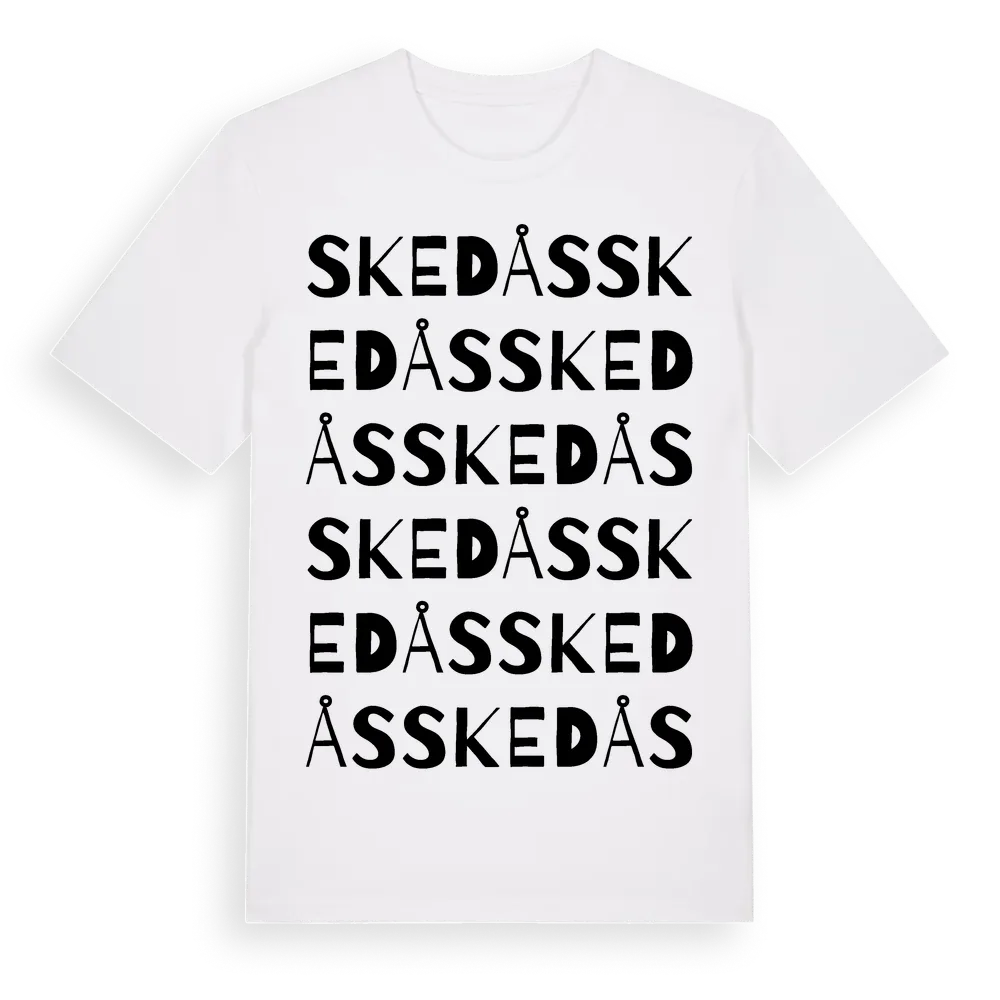 Skedås ordlek t-shirt är inspirerad av byn Skedås i Kalmar län, Sverige. Tröjan är designad för dig som har en speciell koppling till platsen – oavsett om du bor här, har rötterna här eller bara älskar Skedås.