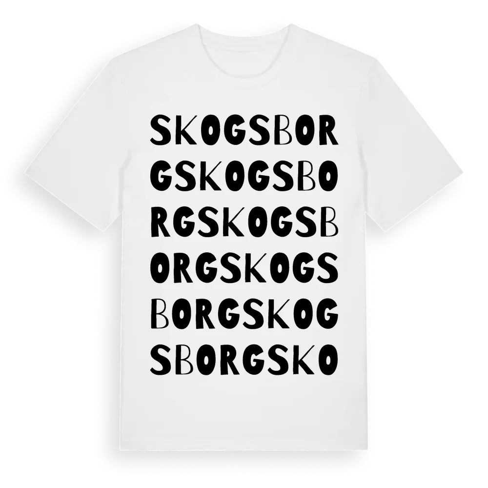Skogsborg ordlek t-shirt är inspirerad av Skogsborg i Kalmar län, Sverige. Tröjan är designad för dig som har en speciell koppling till platsen – oavsett om du bor här, har rötterna här eller bara älskar Skogsborg.