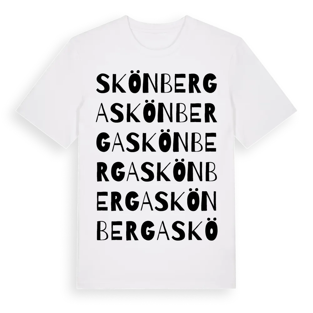 Skönberga ordlek t-shirt är inspirerad av Skönberga i Kalmar län, Sverige. Tröjan är designad för dig som har en speciell koppling till platsen – oavsett om du bor här, har rötterna här eller bara älskar Skönberga.