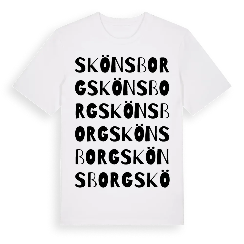 Skönsborg ordlek t-shirt är inspirerad av Skönsborg i Kalmar län, Sverige. Tröjan är designad för dig som har en speciell koppling till platsen – oavsett om du bor här, har rötterna här eller bara älskar Skönsborg.
