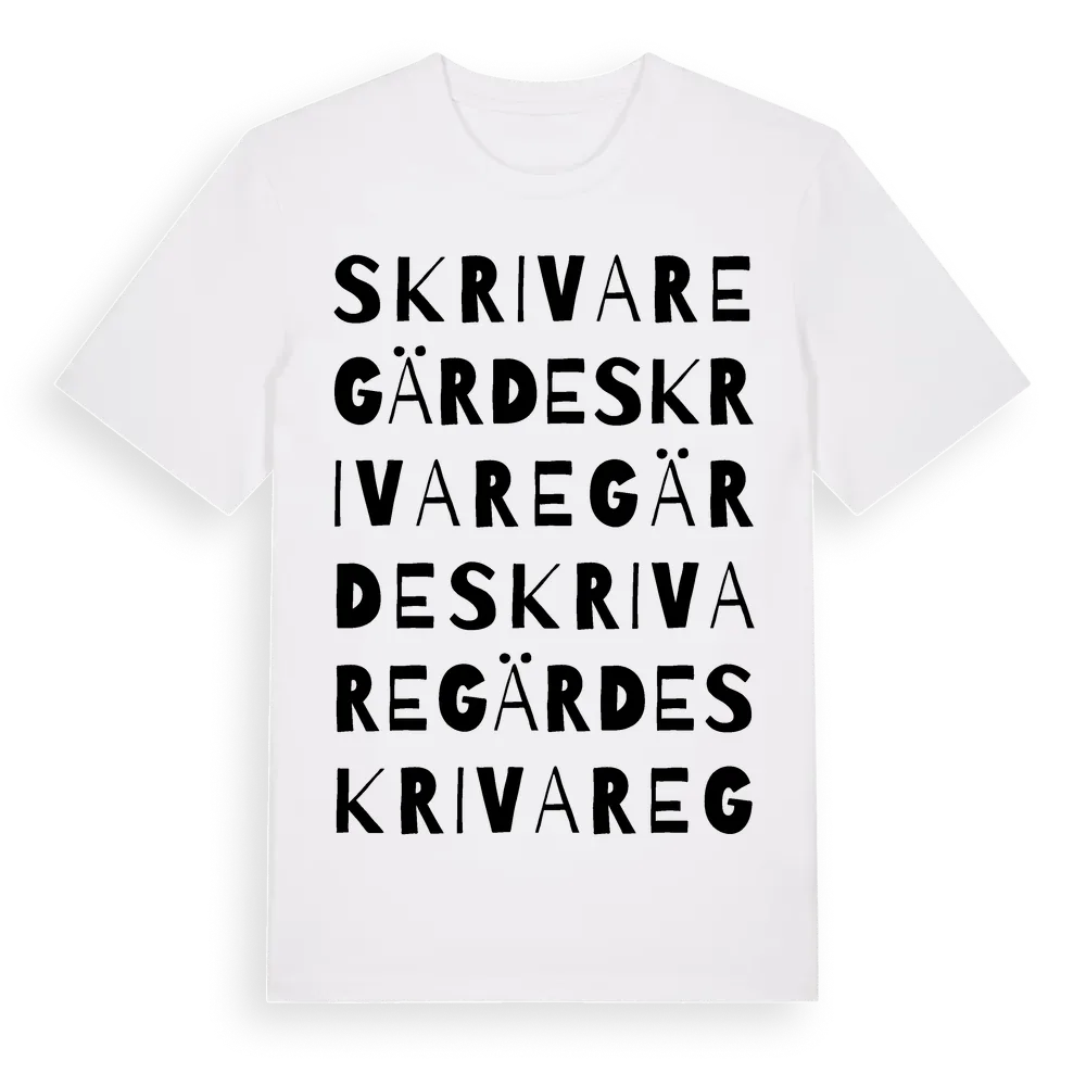 Skrivaregärde ordlek t-shirt är inspirerad av byn Skrivaregärde i Kalmar län, Sverige. Tröjan är designad för dig som har en speciell koppling till platsen – oavsett om du bor här, har rötterna här eller bara älskar Skrivaregärde.