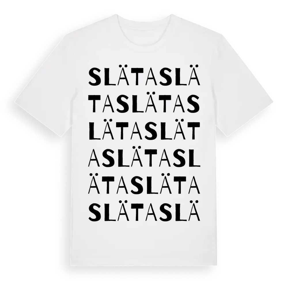 Släta ordlek t-shirt är inspirerad av byn Släta i Kalmar län, Sverige. Tröjan är designad för dig som har en speciell koppling till platsen – oavsett om du bor här, har rötterna här eller bara älskar Släta.