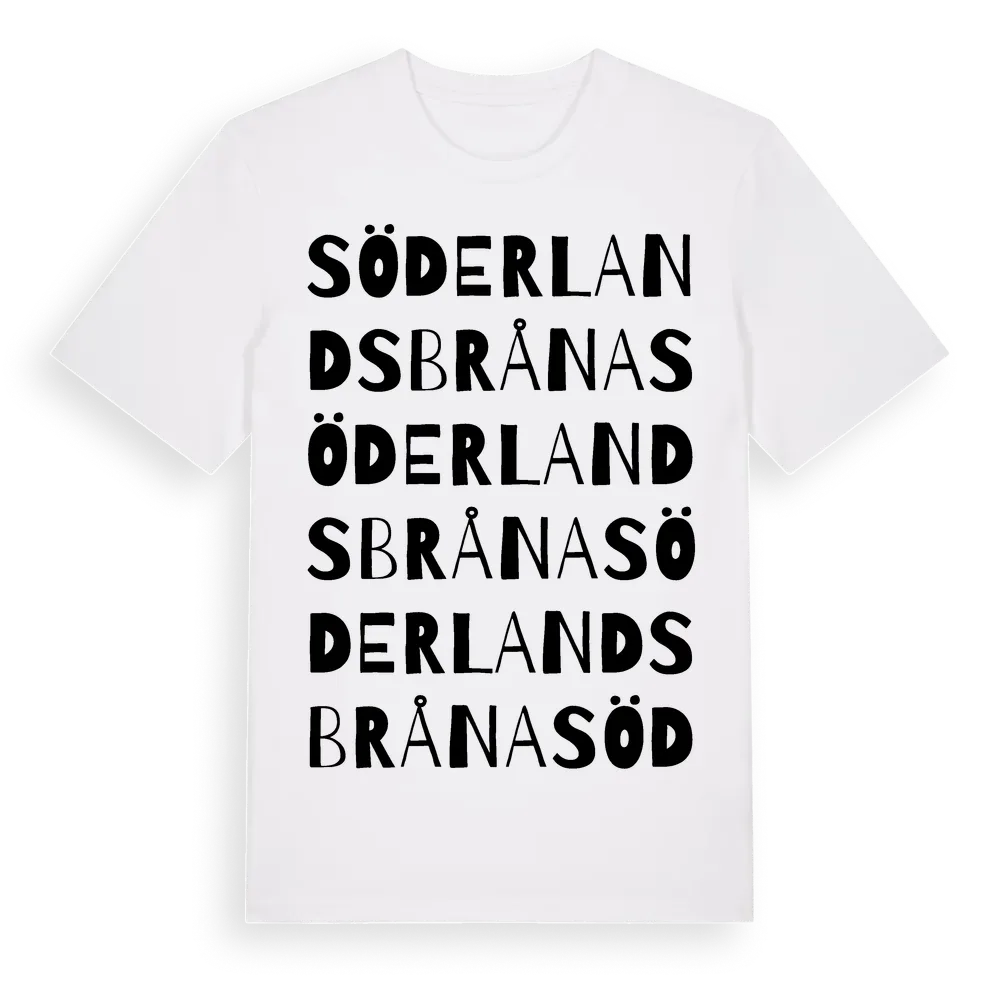 Söderlandsbråna ordlek t-shirt är inspirerad av Söderlandsbråna i Kalmar län, Sverige. Tröjan är designad för dig som har en speciell koppling till platsen – oavsett om du bor här, har rötterna här eller bara älskar Söderlandsbråna.