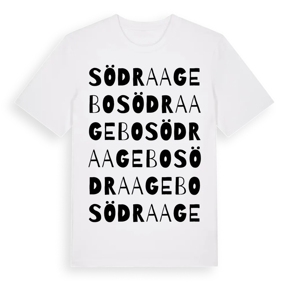 Södra Agebo ordlek t-shirt är inspirerad av byn Södra Agebo i Kalmar län, Sverige. Tröjan är designad för dig som har en speciell koppling till platsen – oavsett om du bor här, har rötterna här eller bara älskar Södra Agebo.