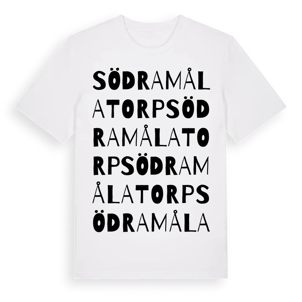 Södra Målatorp ordlek t-shirt är inspirerad av Södra Målatorp i Kalmar län, Sverige. Tröjan är designad för dig som har en speciell koppling till platsen – oavsett om du bor här, har rötterna här eller bara älskar Södra Målatorp.