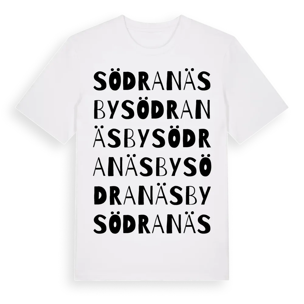 Södra Näsby ordlek t-shirt är inspirerad av byn Södra Näsby i Kalmar län, Sverige. Tröjan är designad för dig som har en speciell koppling till platsen – oavsett om du bor här, har rötterna här eller bara älskar Södra Näsby.