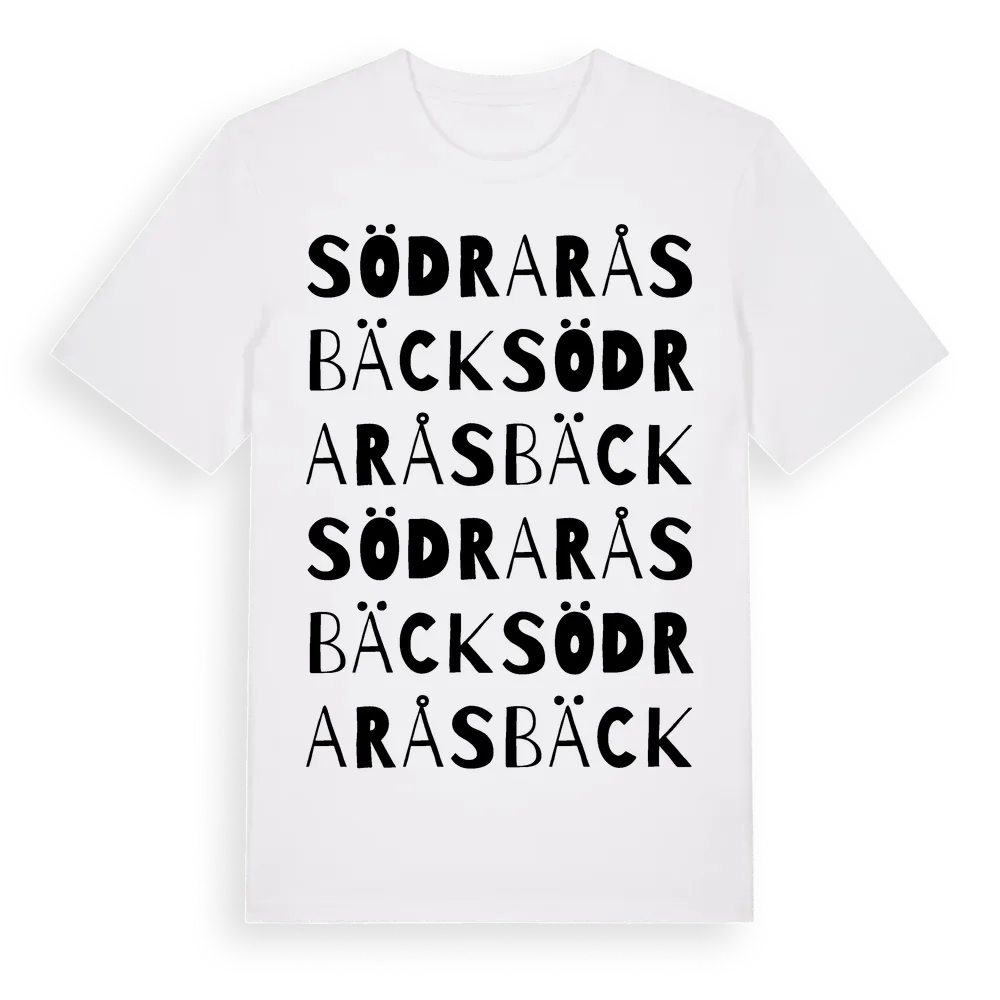 Södra Råsbäck ordlek t-shirt är inspirerad av Södra Råsbäck i Kalmar län, Sverige. Tröjan är designad för dig som har en speciell koppling till platsen – oavsett om du bor här, har rötterna här eller bara älskar Södra Råsbäck.