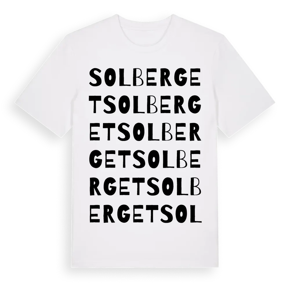 Solberget ordlek t-shirt är inspirerad av Solberget i Kalmar län, Sverige. Tröjan är designad för dig som har en speciell koppling till platsen – oavsett om du bor här, har rötterna här eller bara älskar Solberget.