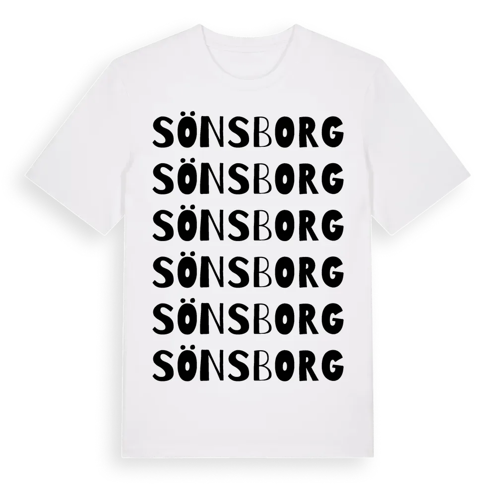 Sönsborg ordlek t-shirt är inspirerad av Sönsborg i Kalmar län, Sverige. Tröjan är designad för dig som har en speciell koppling till platsen – oavsett om du bor här, har rötterna här eller bara älskar Sönsborg.