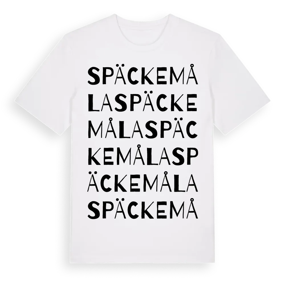 Späckemåla ordlek t-shirt är inspirerad av byn Späckemåla i Kalmar län, Sverige. Tröjan är designad för dig som har en speciell koppling till platsen – oavsett om du bor här, har rötterna här eller bara älskar Späckemåla.
