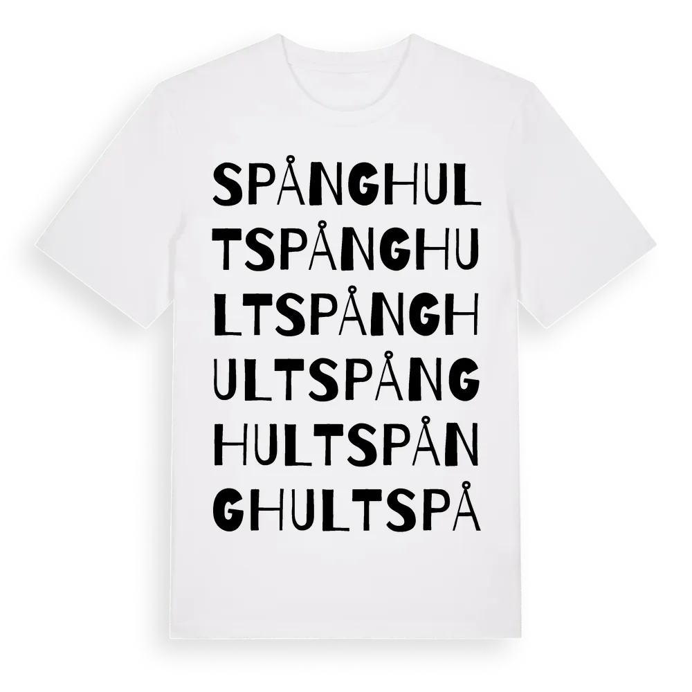 Spånghult ordlek t-shirt är inspirerad av Spånghult i Kalmar län, Sverige. Tröjan är designad för dig som har en speciell koppling till platsen – oavsett om du bor här, har rötterna här eller bara älskar Spånghult.