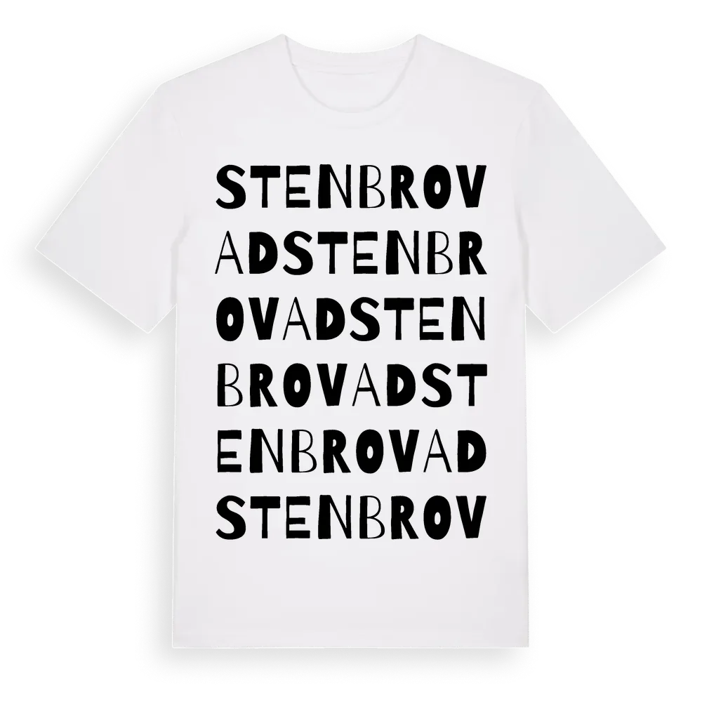 Stenbrovad ordlek t-shirt är inspirerad av byn Stenbrovad i Kalmar län, Sverige. Tröjan är designad för dig som har en speciell koppling till platsen – oavsett om du bor här, har rötterna här eller bara älskar Stenbrovad.