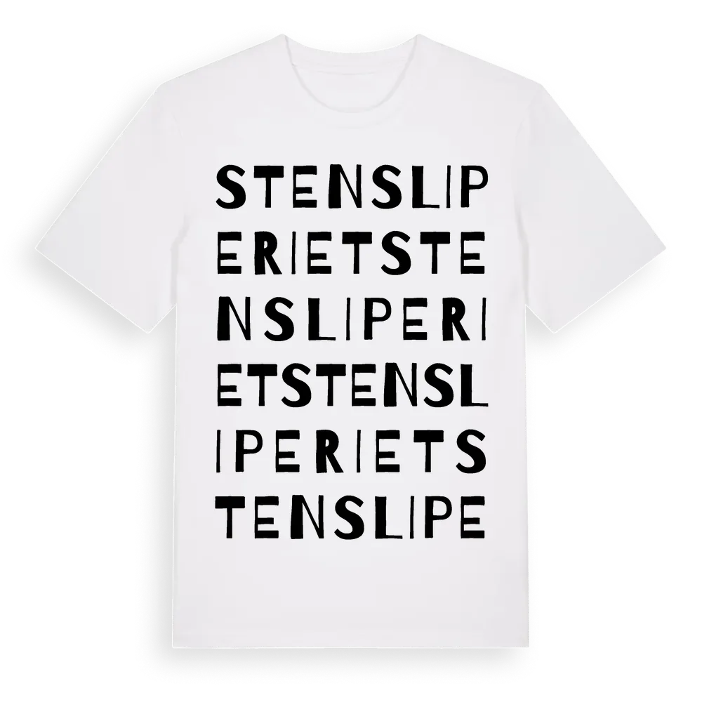 Stensliperiet ordlek t-shirt är inspirerad av Stensliperiet i Kalmar län, Sverige. Tröjan är designad för dig som har en speciell koppling till platsen – oavsett om du bor här, har rötterna här eller bara älskar Stensliperiet.