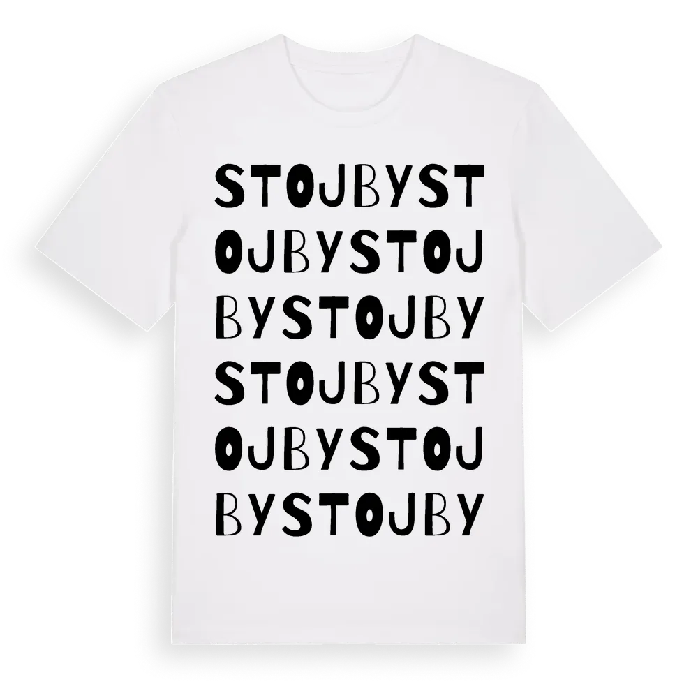 Stojby ordlek t-shirt är inspirerad av byn Stojby i Kalmar län, Sverige. Tröjan är designad för dig som har en speciell koppling till platsen – oavsett om du bor här, har rötterna här eller bara älskar Stojby.