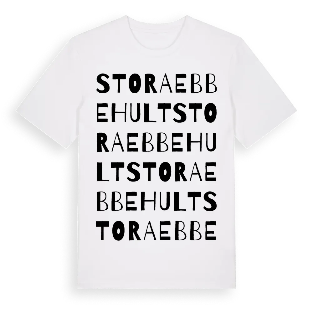 Stora Ebbehult ordlek t-shirt är inspirerad av byn Stora Ebbehult i Kalmar län, Sverige. Tröjan är designad för dig som har en speciell koppling till platsen – oavsett om du bor här, har rötterna här eller bara älskar Stora Ebbehult.